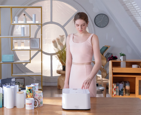 Automatic heat pressing that fits a variety of tumblers and mugs – perfect customization, every time.