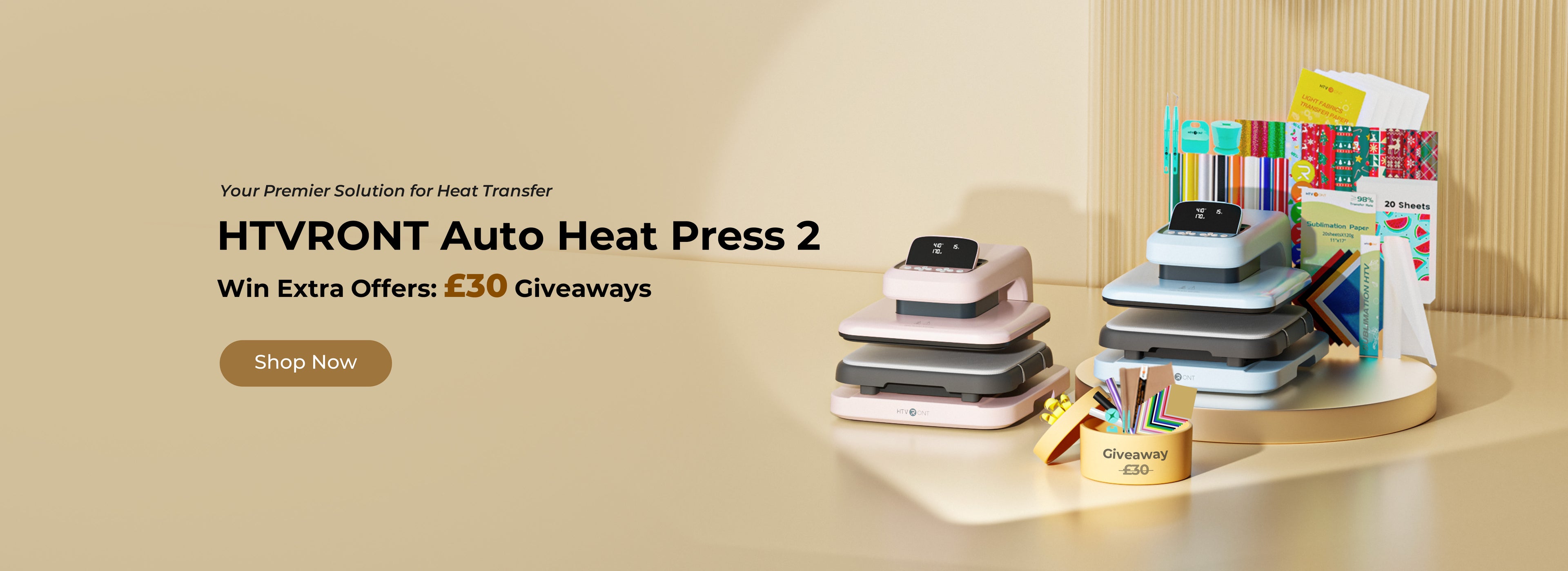 ![[All in one]HTVRONT Auto Heat Press 2+Tumbler Heat Press+Hat Heat Press+All in One Bundle(Multicolor HTV Roll*20+150 sheets Sublimation Paper A4+Sublimation HTV Roll+PUFF HTV*8+Tumbler Blanks*4+Canvas Bags*6+Cap*2+Tools≥237 £)](http://www.htvront.co.uk/cdn/shop/files/6_c40f6148-efa4-4b45-9252-16379cb1b6a0_355x.jpg?v=1760948331)