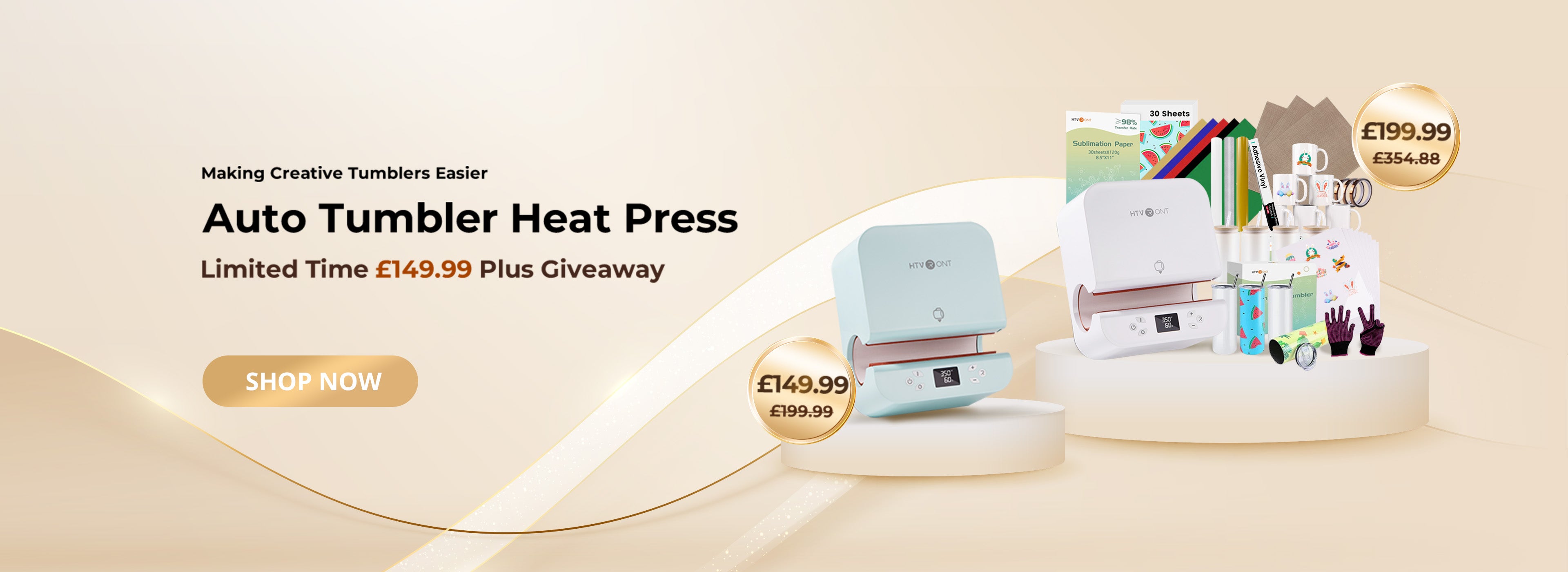 Automatic heat pressing that fits a variety of tumblers and mugs – perfect customization, every time.