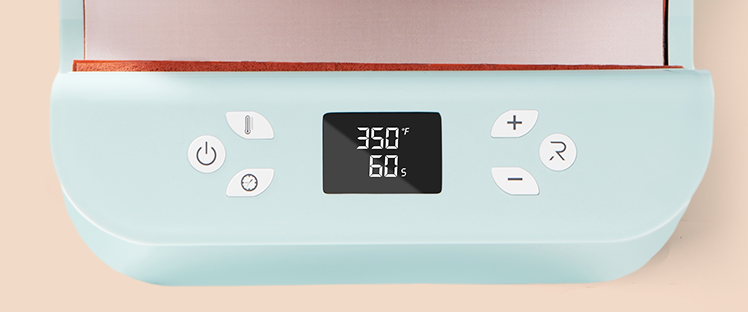 Equipped with an LED screen and setting buttons, the heat press allows you to freely adjust and monitor the temperature and time during the operation (Max: Temp: 390℉(200℃), Time: 600 s).