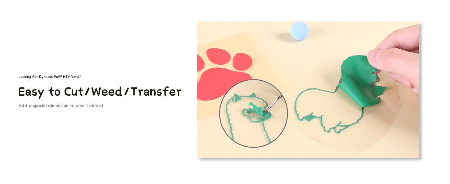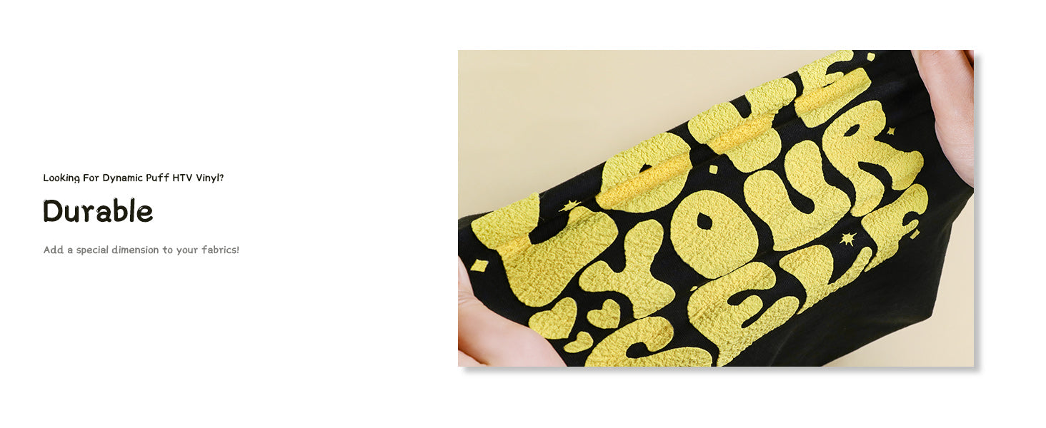 HTVRONT's 3D Puff Vinyl expands under heat to create a fun, fuzzy, and matte 3D effect that pops up for added texture and thickness. PLEASE NOTE that the surface is flocked rather than smooth. Besides, Our premium Puff Vinyl adheres seamlessly to your fabric and holds up well in the wash. Please wait 24 hours before washing and flip the shirt inside out when washing.