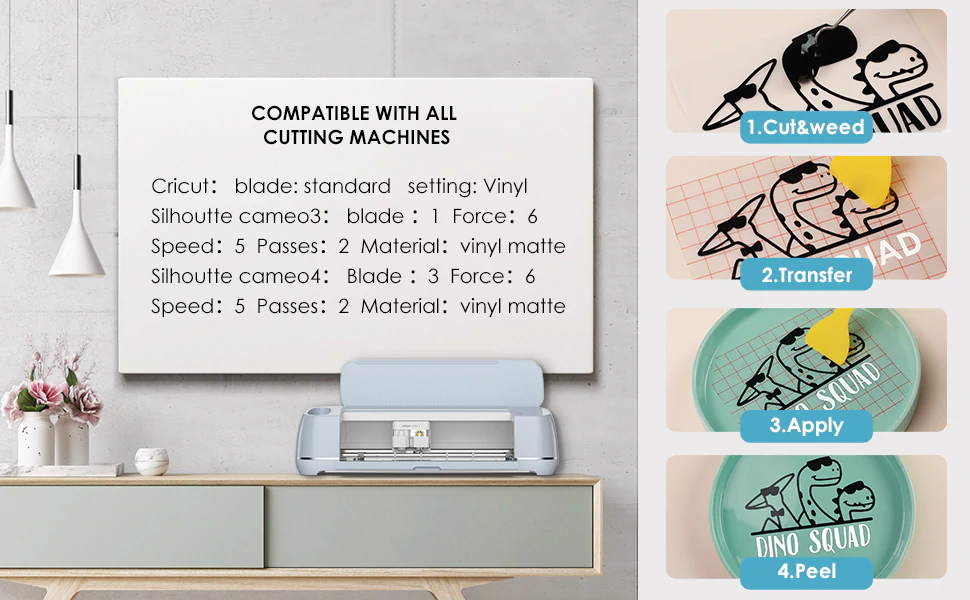 With a clear and adhesive PET backing, HTVRONT Permanent Vinyl is easy to cut without tearing the projects and to differentiate its cutting side. There’s also no backing ruining and bubbles while cutting.?